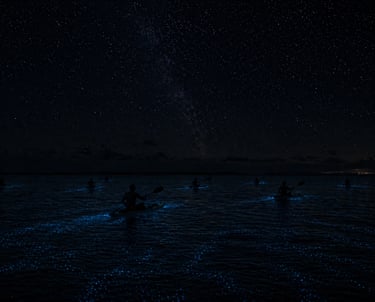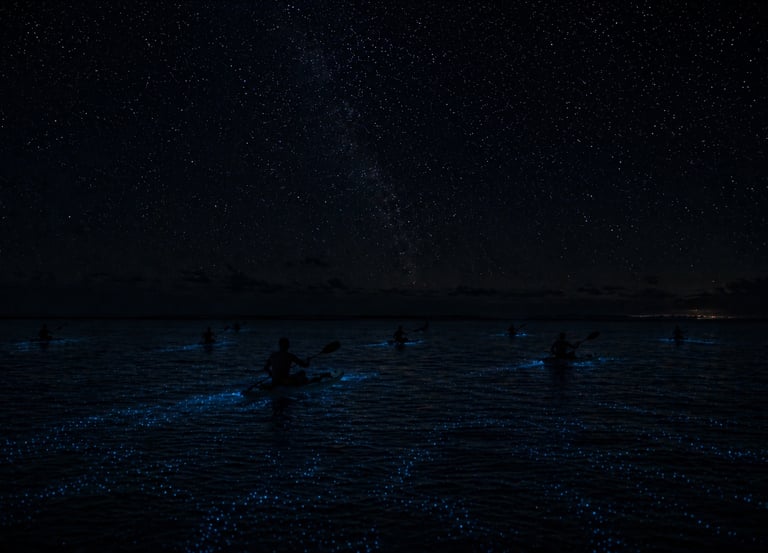 Bioluminescence kayaking is a unique and magical experience that allows you to paddle through waters that glow with natural light, thanks to the presence of bioluminescent organisms—most commonly dinoflagellates or comb jellies. These tiny marine creatures emit a soft blue-green light when disturbed, causing the water around your kayak, paddle, and even your hands to sparkle and glow with every movement.