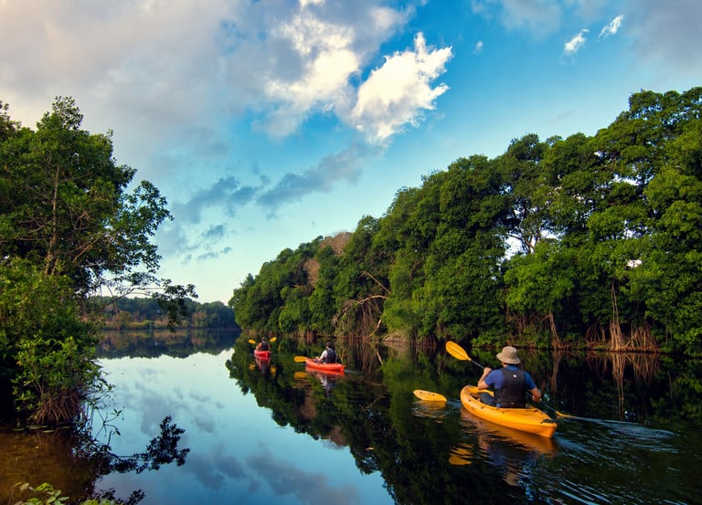 Mangrove kayaking is an immersive and eco-friendly adventure that takes you through the winding waterways and tunnels formed by dense mangrove forests. These unique coastal ecosystems are rich in biodiversity and provide a calm, shady, and often surreal paddling experience.